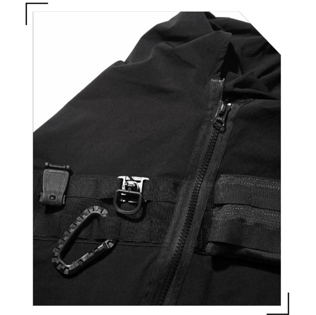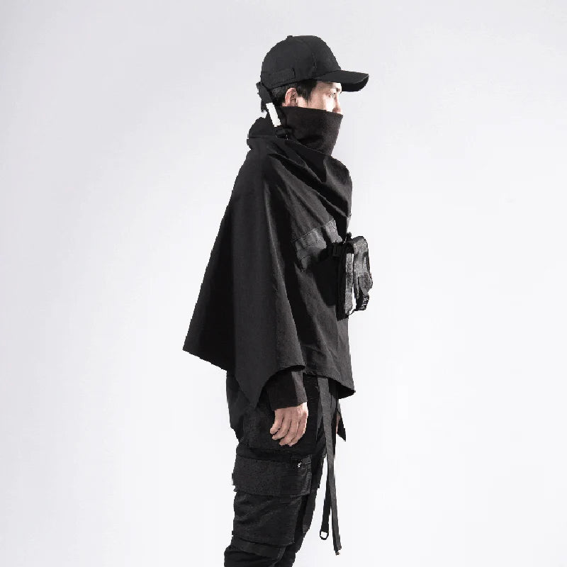 • Technical clothing: This techwear cloak is equipped with a multitude of storage pockets to easily carry your personal belongings.