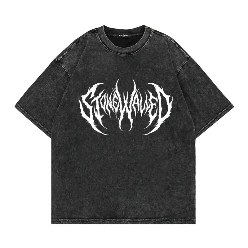 Inspired by darkwear, this shirt has a metal font print on the chest. Available in black, this death metal font shirt has an oversized fit and soft touch. Marrying the haunting ethos of the death metal genre with the urban charm of street goth fashion, our "Death Metal Font Shirt" stands as an emblem of dark sophistication.