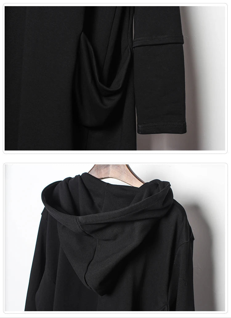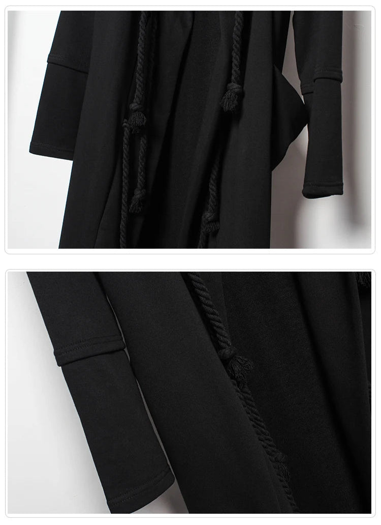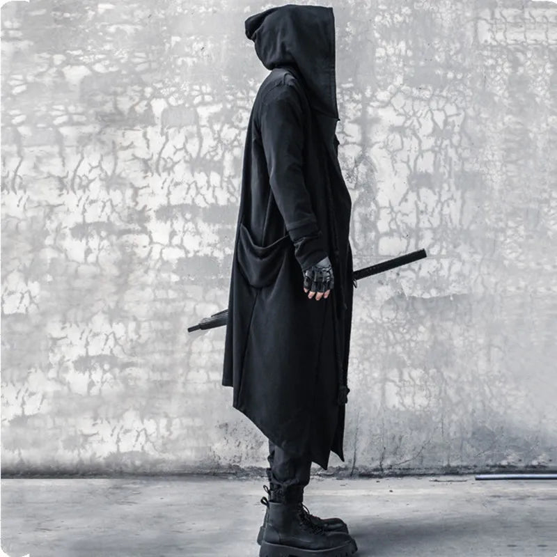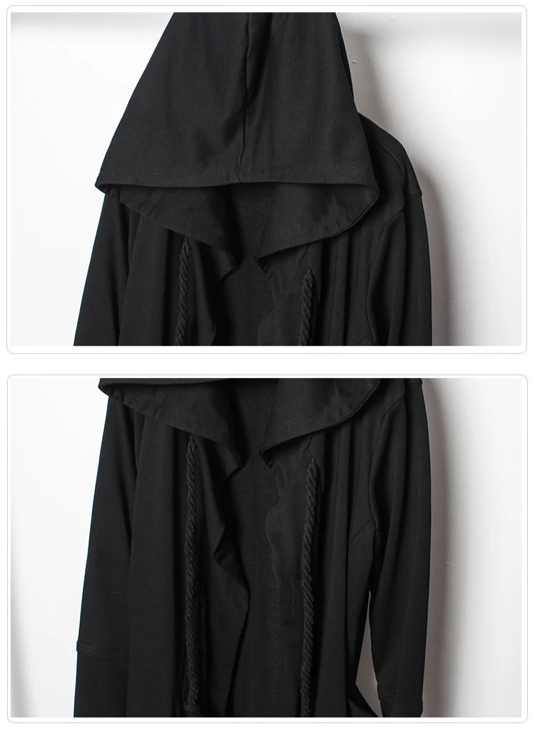 Embrace your uniqueness with our Nocturne Kernel Cloak. Whether you're aiming to add some sophistication to your casual attire or looking for an easy way to introduce an air of mystery to your ensemble, this piece offers a perfect blend of hoodie and cloak in one stylish package.