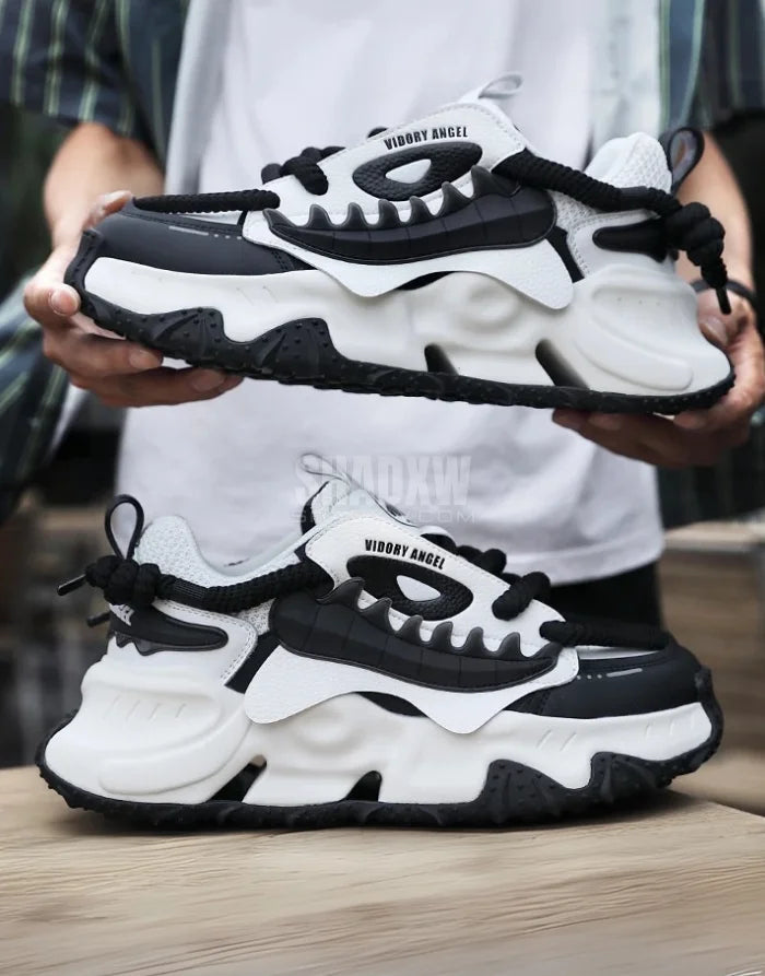 Designed with the modern streetwear enthusiast in mind, these monochrome sneakers seamlessly integrate with techwear outfits, warcore aesthetics, and futuristic fashion. The bold black-and-white contrast pairs effortlessly with cargo pants, oversized jackets, and modular accessories, giving you unmatched versatility. Whether you’re into minimalist techwear or layered cyberpunk ensembles, these shoes complete the look effortlessly.