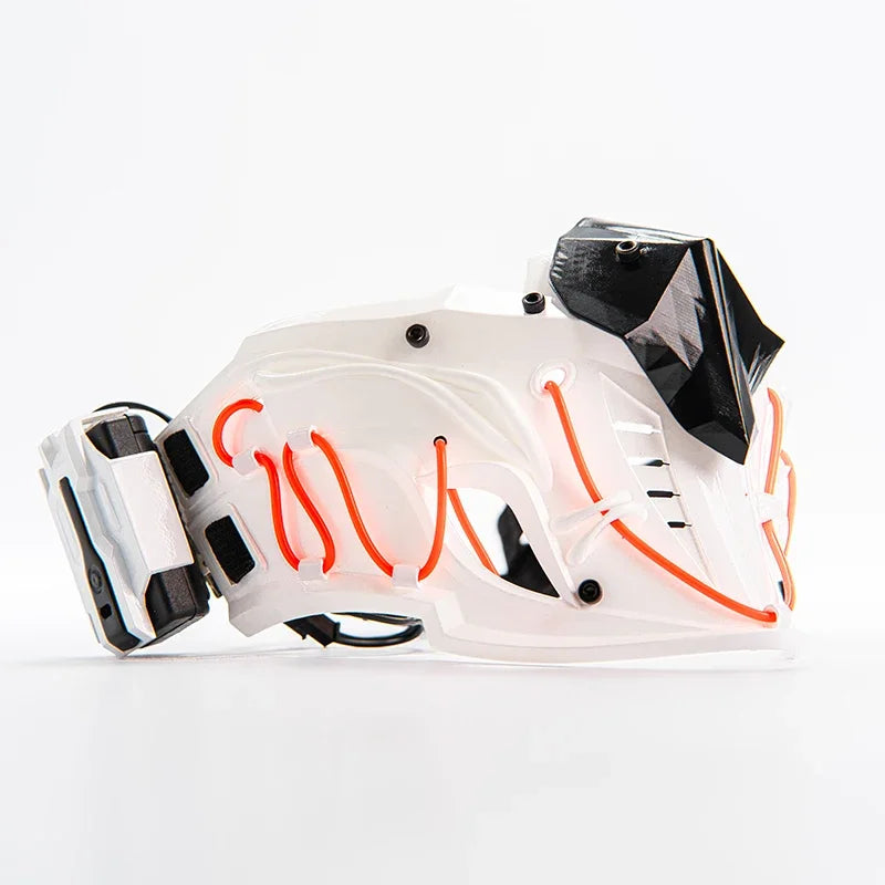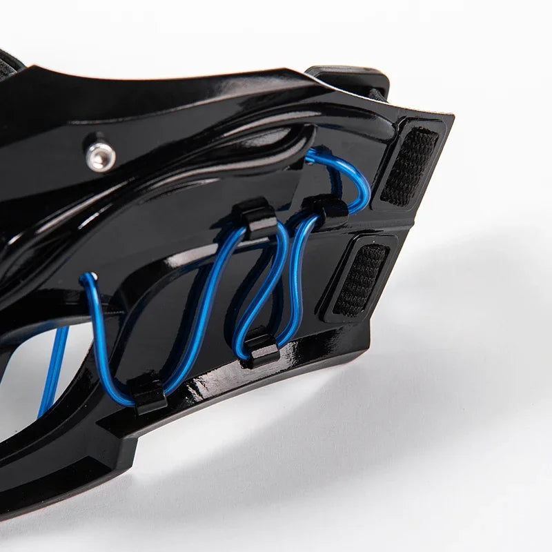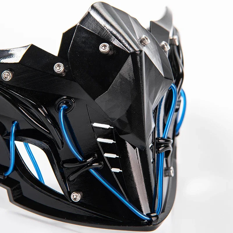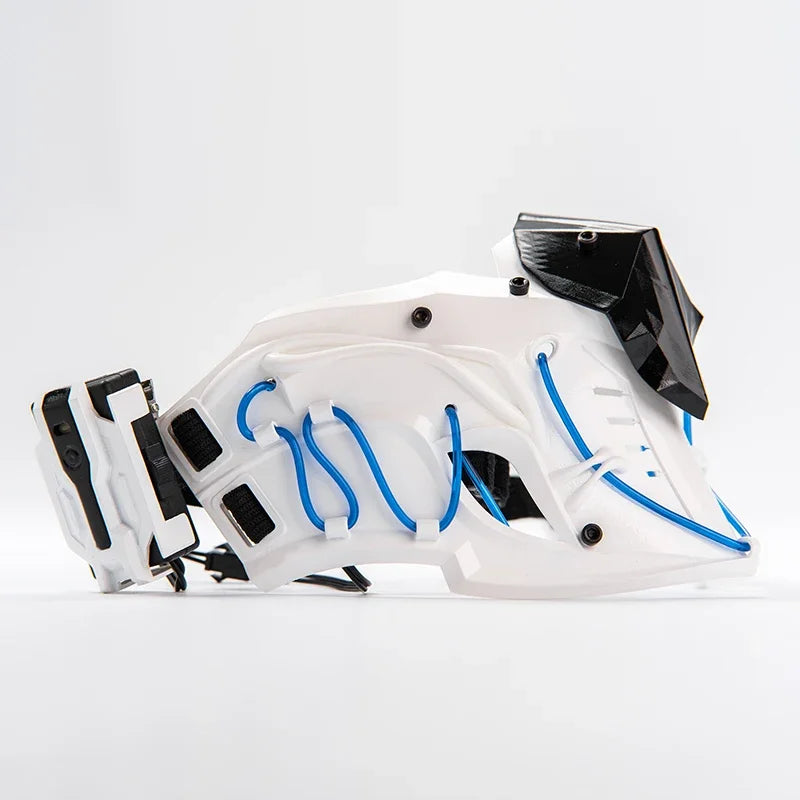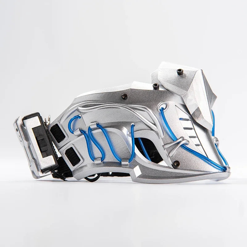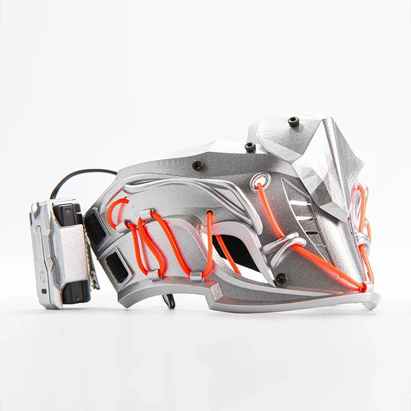 Available in sleek silver, black, and white variants, this cyberpunk mask offers a choice of blue or red light accents that add an extra layer of visual appeal. Whether you're walking through the city at night or attending a tech-inspired event, the mask’s glow will ensure you stand out. The integrated lights are subtle yet powerful, giving you that futuristic ninja edge.
