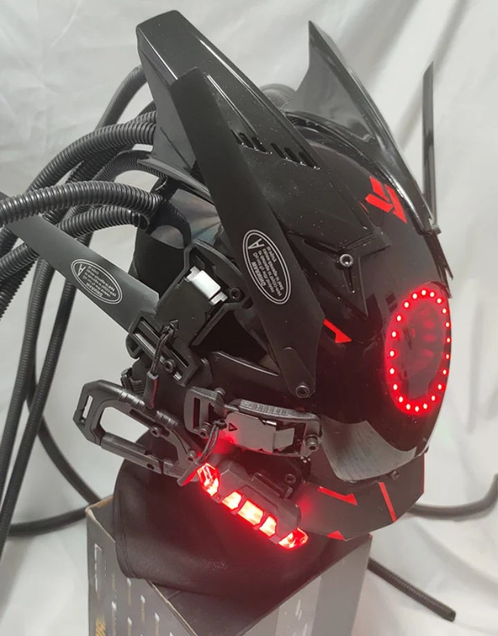 The perfect futuristic accessory to match your techwear cyberpunk style. Its avant-garde design makes it a unique piece that will give you a futuristic look worthy of transhumans and cyborgs. Perfect for Halloween!