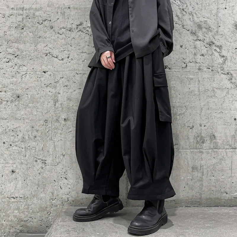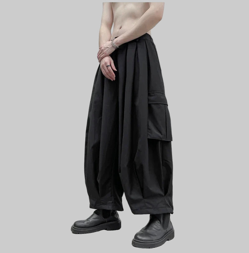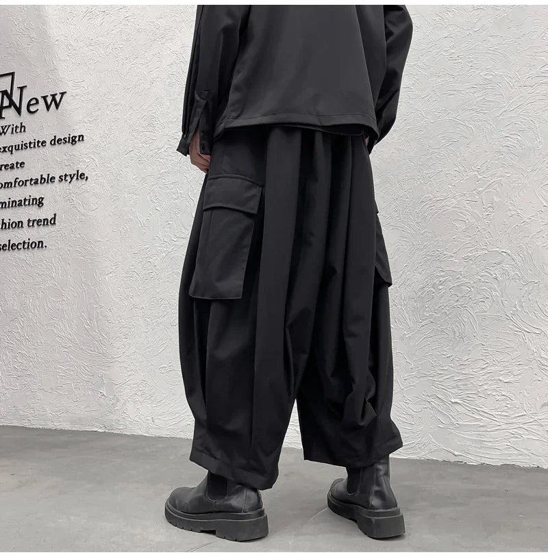 These Hakama Cargo Pants are designed for those who appreciate both style and utility. With their minimalist aesthetic, they perfectly blend into the world of techwear while offering practical features that make them suitable for day-to-day wear.