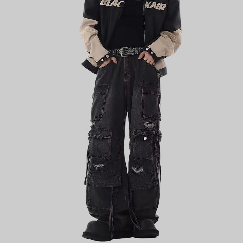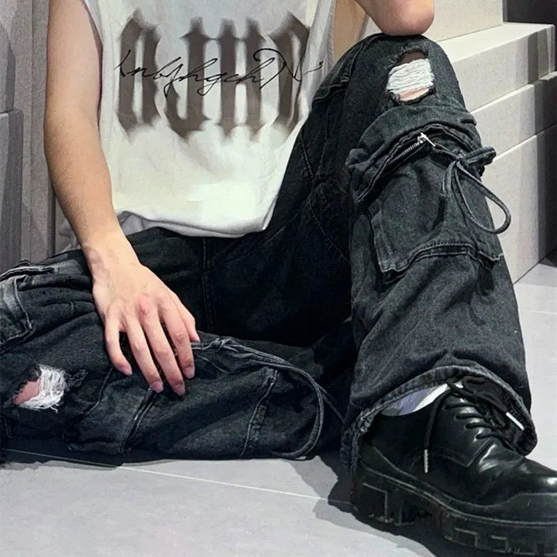 When it comes to rocking your Y2K Baggy Jeans, the possibilities are endless. For a full-blown Y2K aesthetic, pair them with a cropped graphic tee or a futuristic tank top. Add chunky sneakers or combat boots to complete the look. If techwear is more your vibe, layer them with a tactical vest or an oversized windbreaker for a bold, street-ready outfit.