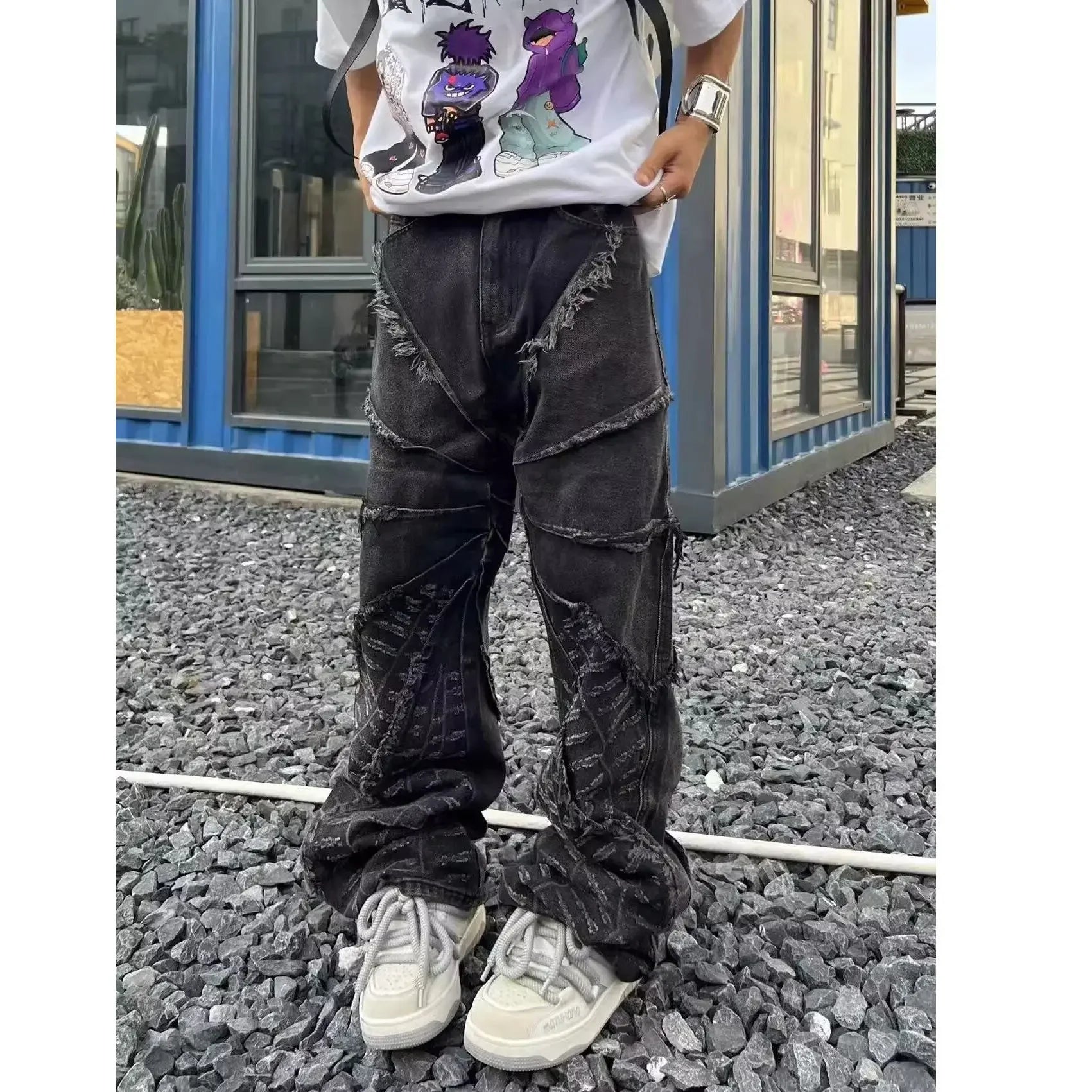 The Y2K Black Baggy Jeans are everything your wardrobe needs to channel that nostalgic yet futuristic vibe of the early 2000s. Designed with a contemporary twist on retro streetwear, these jeans are the perfect blend of comfort, versatility, and bold style. Whether you're strutting the urban streets or curating your techwear-inspired look, these jeans are a must-have piece to elevate your outfit game.