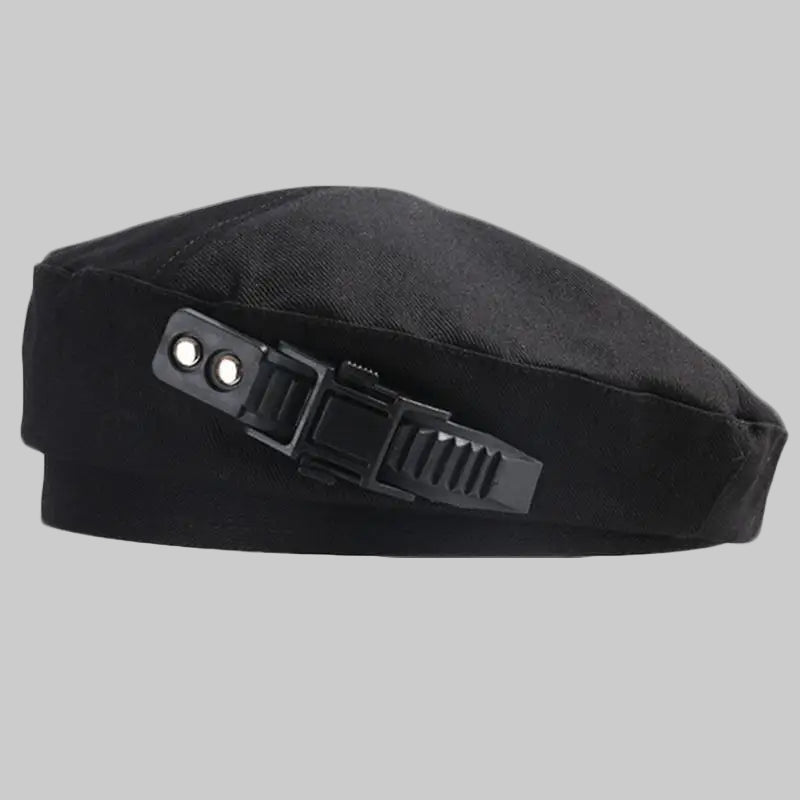 The ultimate tactical beret for all your outdoor and warcore outfits. Made with durable cotton fabric and polyester, this beret is designed to withstand the toughest conditions while keeping you comfortable. Featuring a classic military style with a buckle, it is perfect for women. With its timeless design and versatile functionality, this tactical beret is a must-have for any outdoor enthusiast, soldier, techwear or anyone looking for a stylish and functional accessory. The ultimate in tactical headwear.