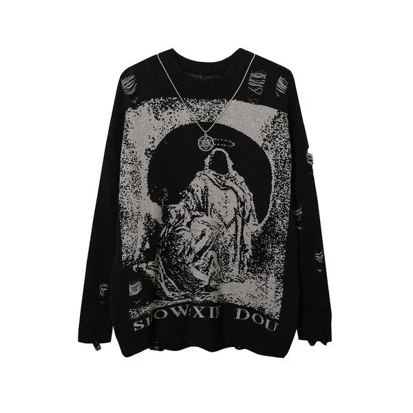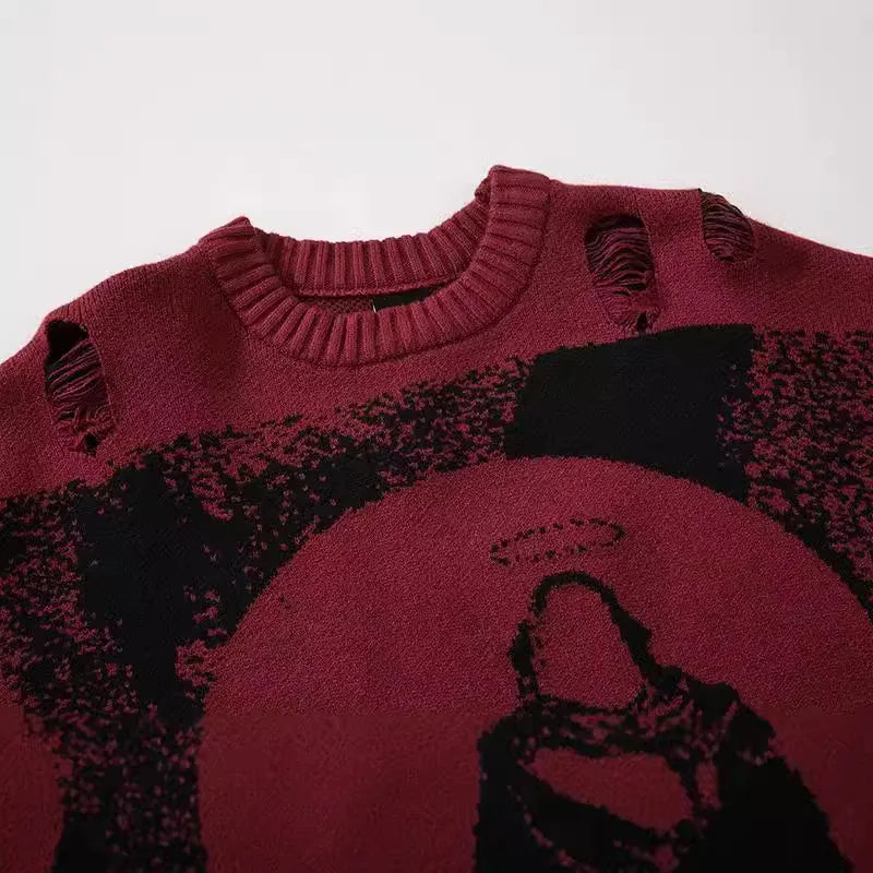 Made from high-quality materials that ensure warmth and durability, the sweater features strategically placed rips and distressed details that offer an artful take on contemporary streetwear. The Sanctum Decay Sweatshirt is a testament to the art of deconstruction. The bold, distressed look captures the essence of rebellion and individuality. Its design incorporates a variety of rips and holes, making each piece subtly unique. This design is not only about aesthetics but also serves as a commentary on the transient nature of fashion, where the old continuously transforms into the new.