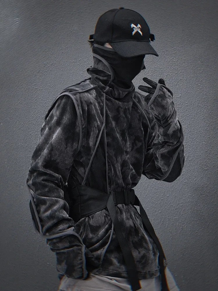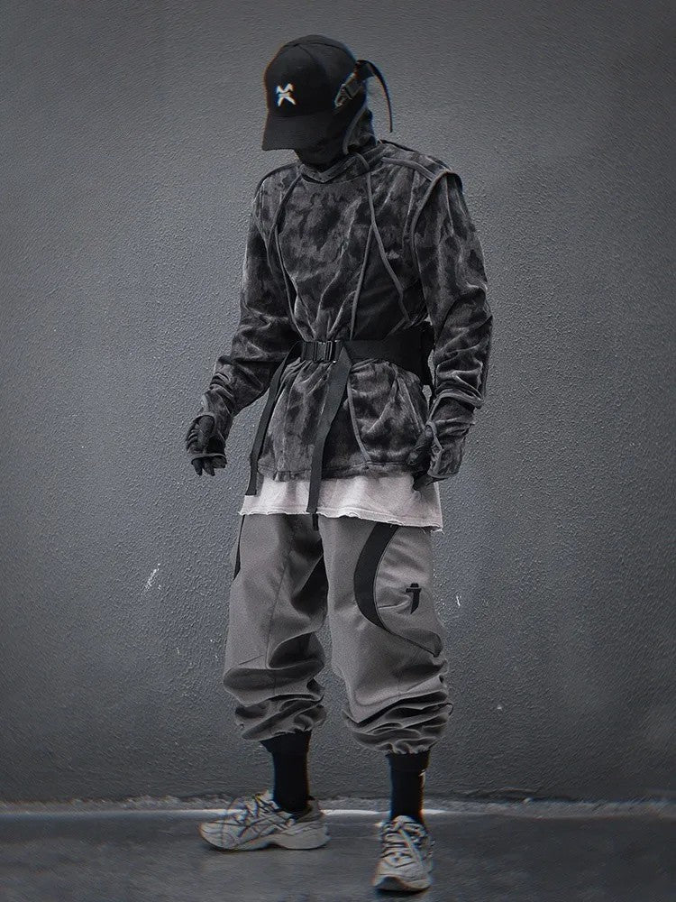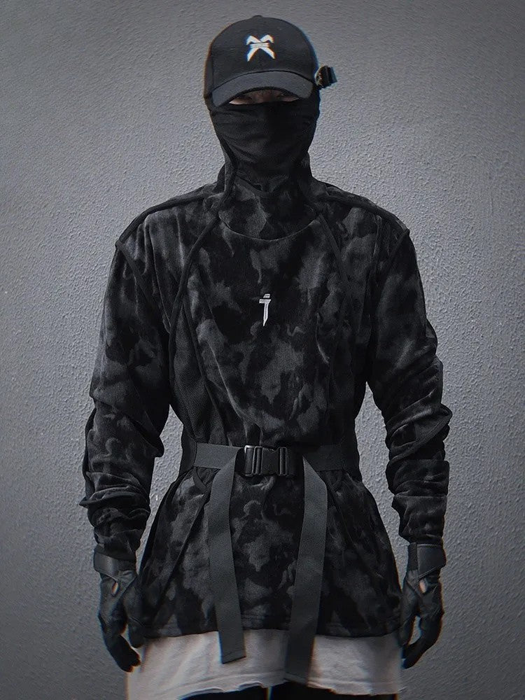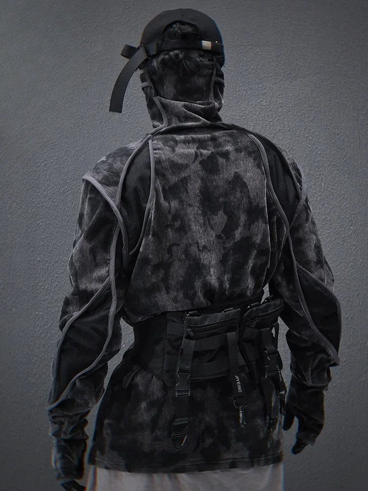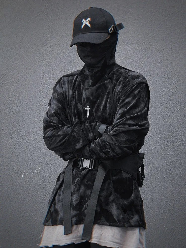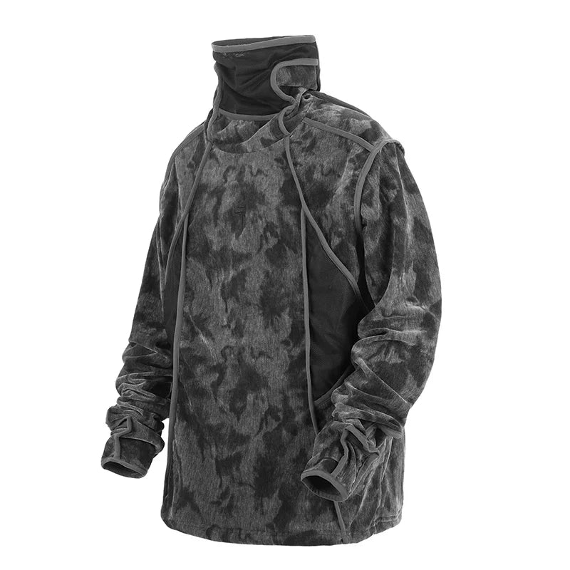 The camo pattern isn't just for looks—it’s a reimagination of the traditional print. Utilizing a monochrome palette, this pullover stays true to the techwear ethos of muted yet striking visuals. The pattern draws attention without overwhelming, making it the perfect pairing for other minimalist techwear pieces like tactical pants or a modular jacket. Whether you're on a casual stroll or creating a head-to-toe streetwear ensemble, this pullover adapts to your style.