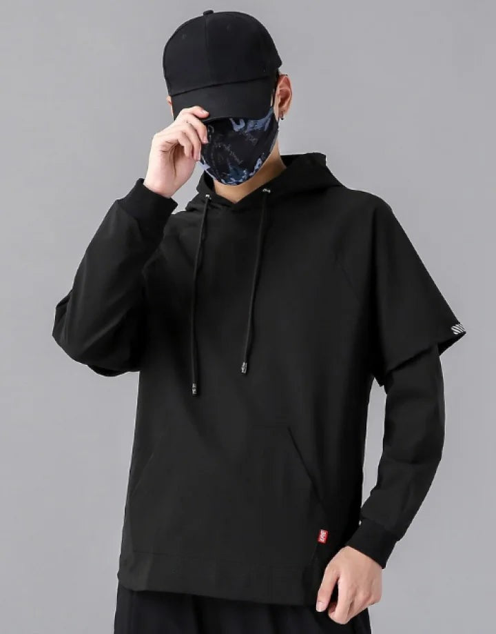 • Breathable materials: This techwear hoodie made of polyester, cotton and spandex can be worn all year round.