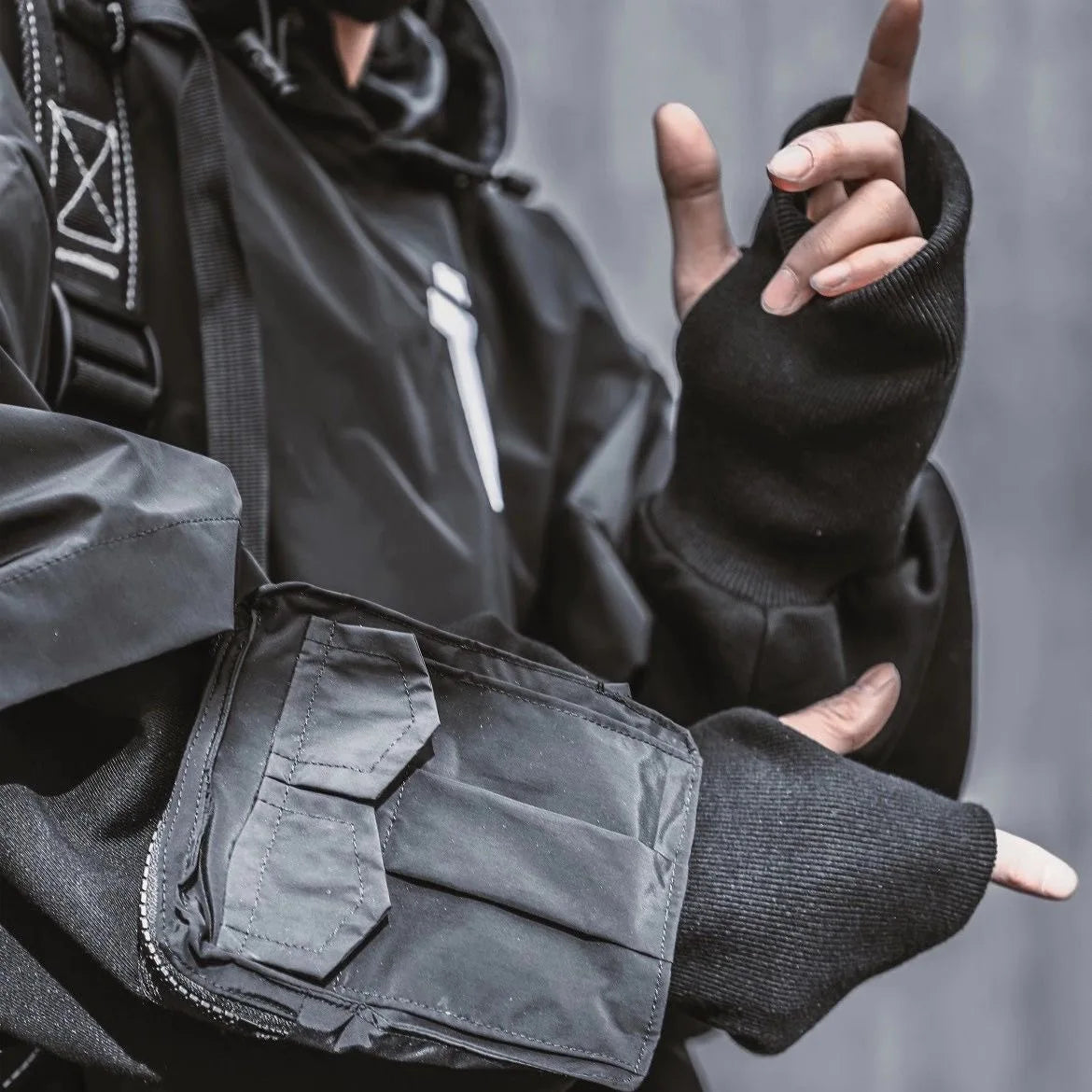 - Technical clothing: This techwear hoodie is an ideal softshell to complete your Techwear outfit.