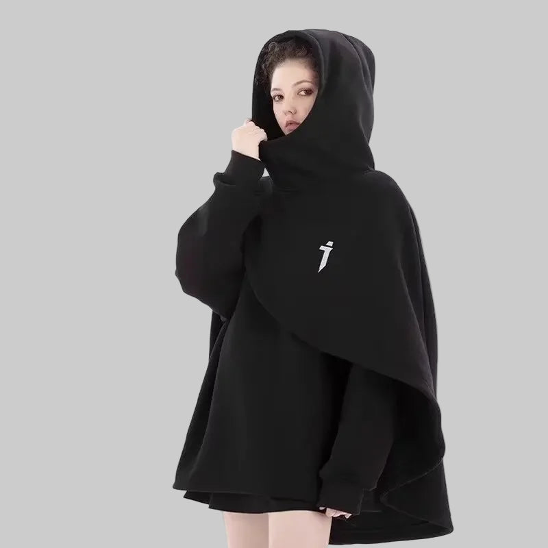 The Silent Uplink Cloak Hoodie isn’t just about style—it’s packed with practical features that make it a staple for your techwear wardrobe. The oversized hood offers protection against wind and rain, while the loose fit allows for easy layering with other garments. Whether you’re exploring the city or heading to a casual meetup, this cloak ensures you’re prepared for any situation. Its adaptability makes it ideal for those who value both functionality and bold aesthetics.