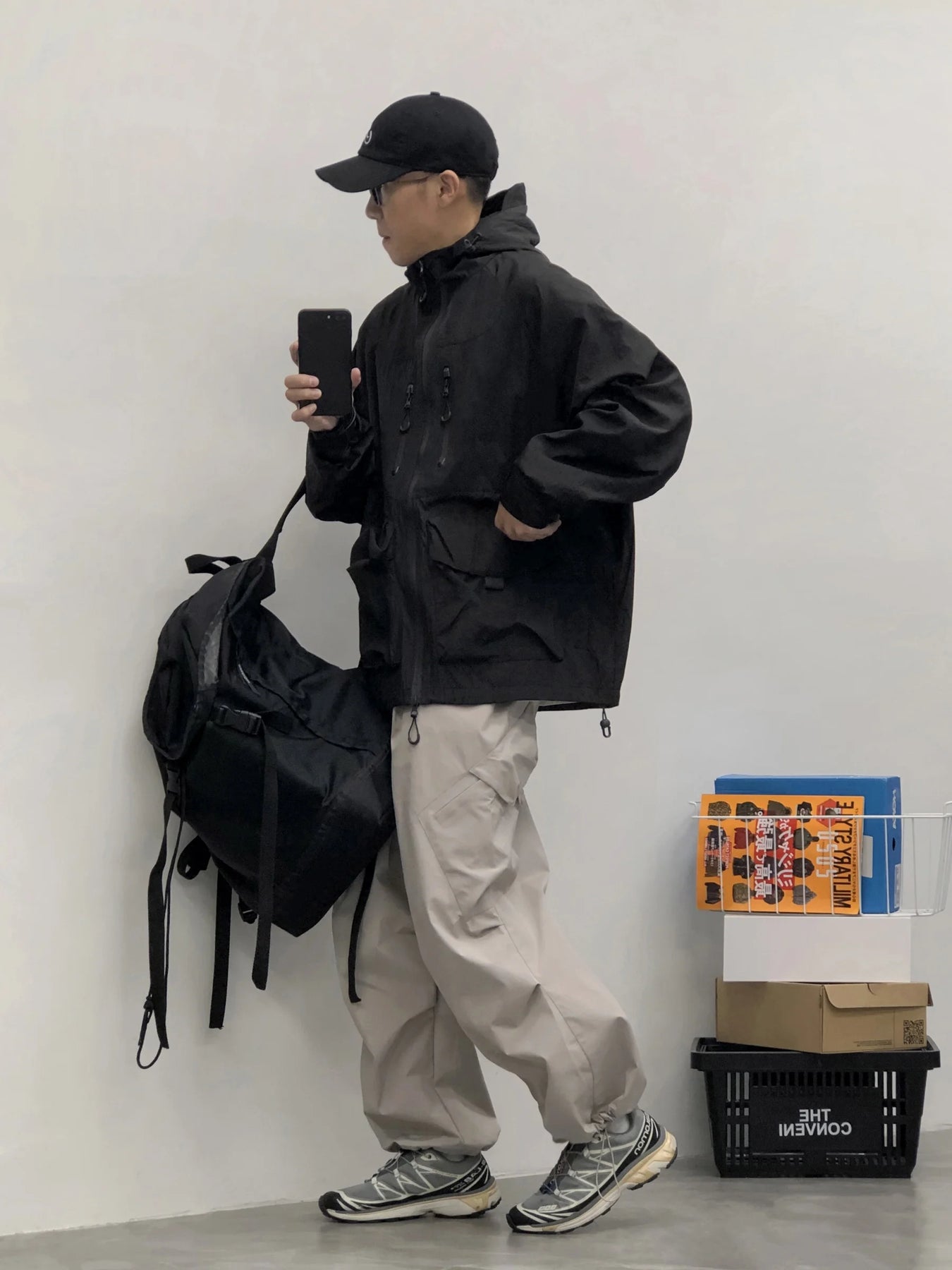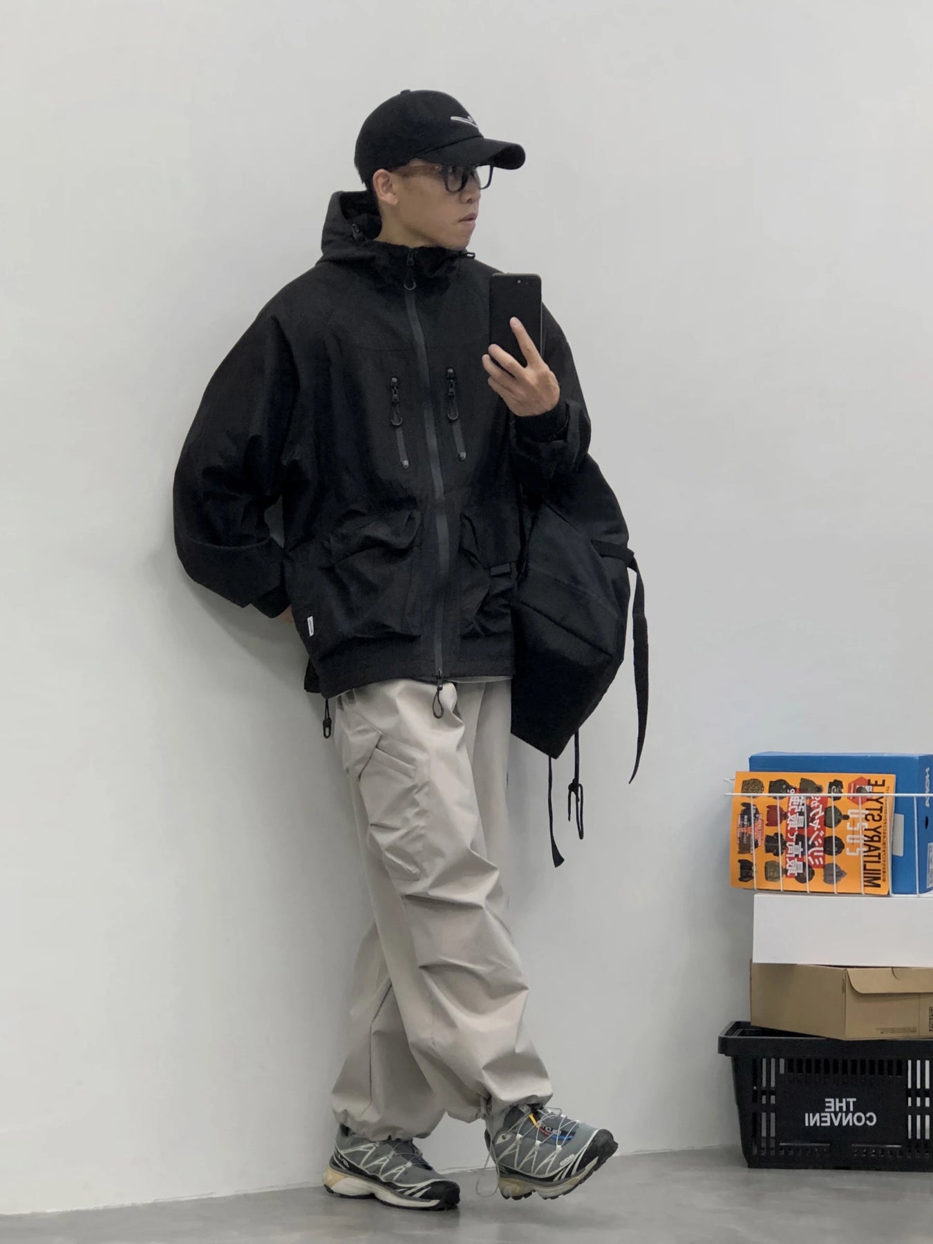 • Breathable materials: This techwear jacket made of polyester, cotton and spandex can be worn all year round.