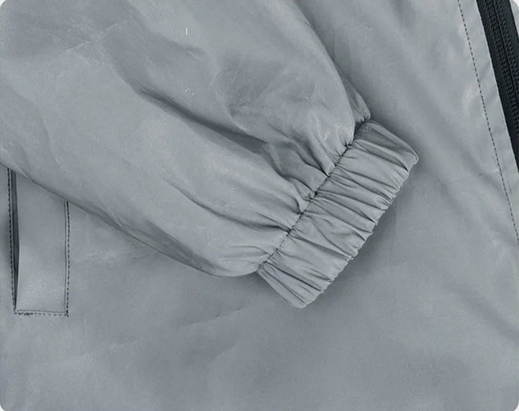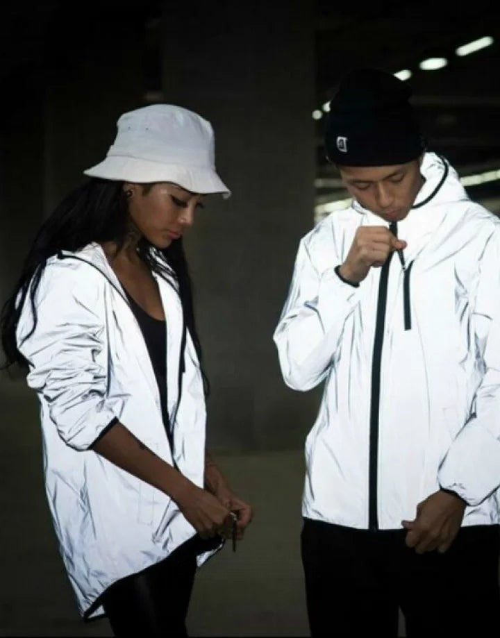 • Technical clothing: This techwear jacket is made of reflective fabric.