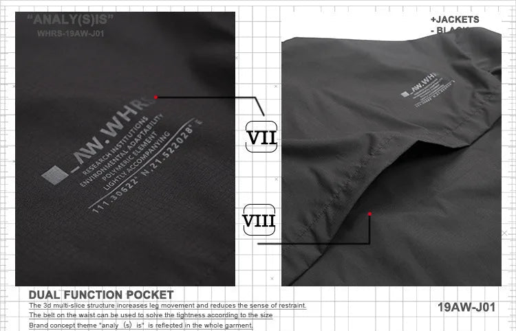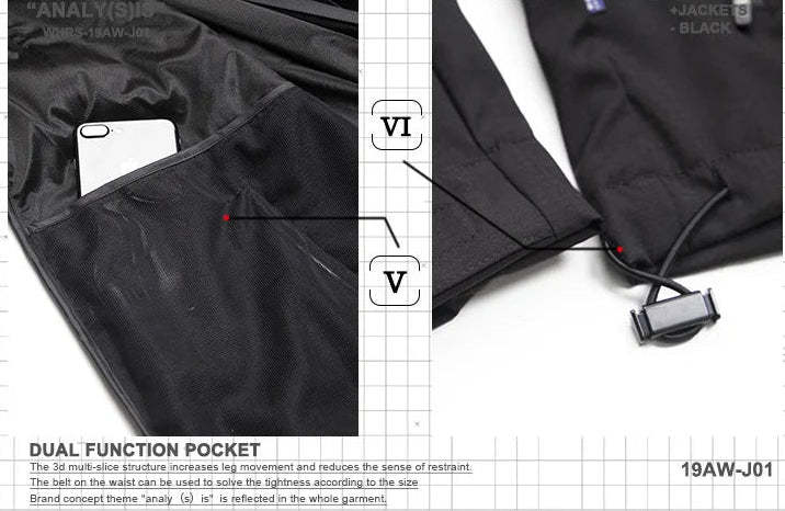 Technical clothing: This techwear jacket is equipped with a multitude of storage pockets to easily carry your personal belongings.