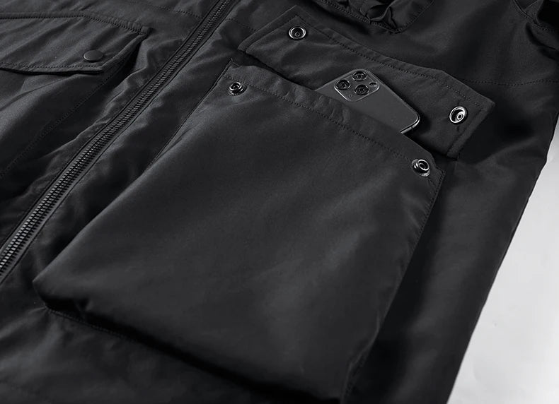 • Technical clothing: This techwear jacket is equipped with a multitude of storage pockets to easily carry your personal belongings.