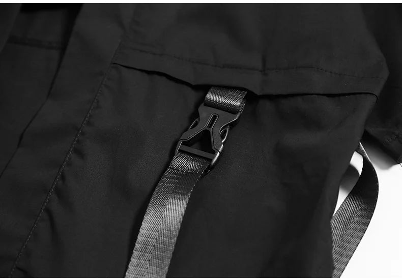 The techwear kimono is a type of clothing that combines the traditional Japanese kimono with modern, technical fabrics. It is designed to be both stylish and functional, and can be worn as either formal or casual wear. Techwear kimono is made from polyester, which is more durable and resistant to stains than traditional cotton fabrics. The kimono techwear features large front clip closure pockets and straps, which can be used to carry equipment or store belongings. This black techwear kimono is a must-have in your wardrobe.