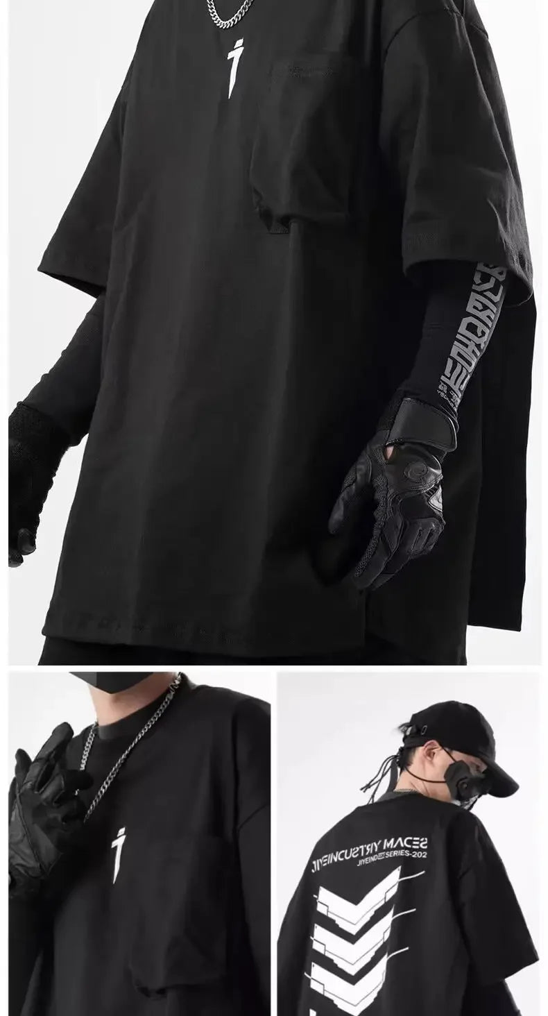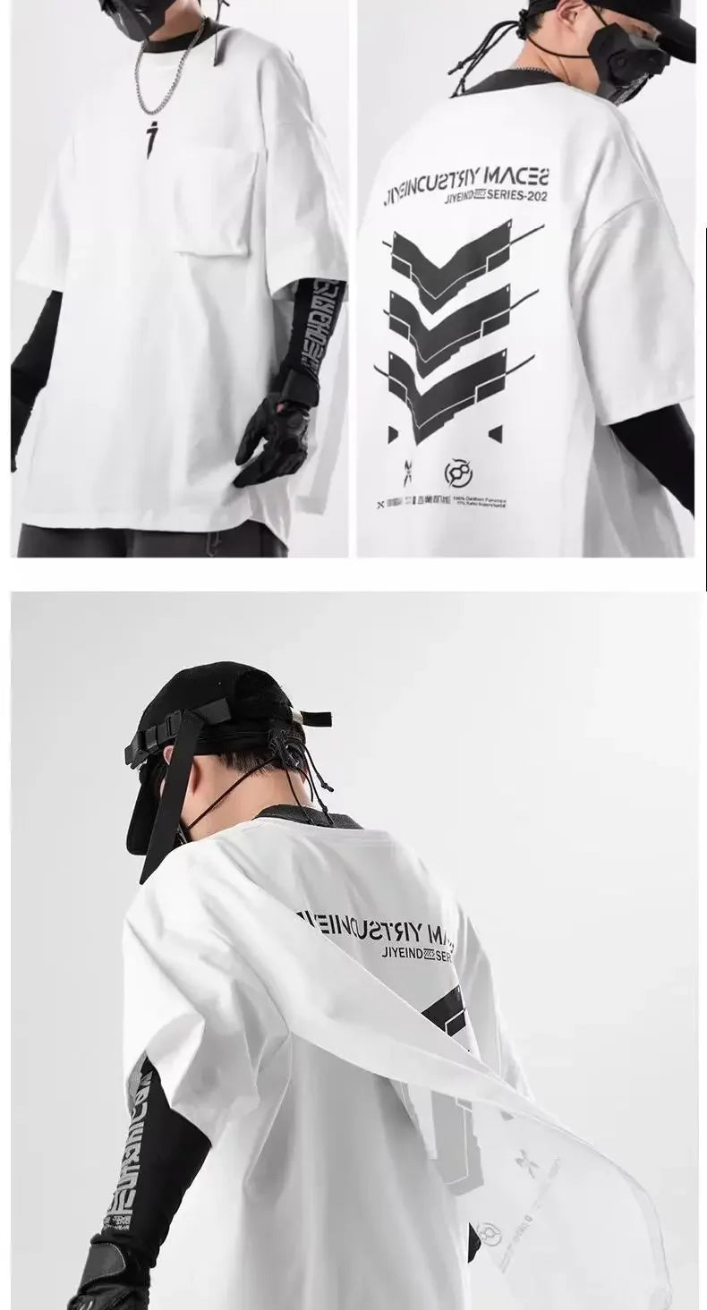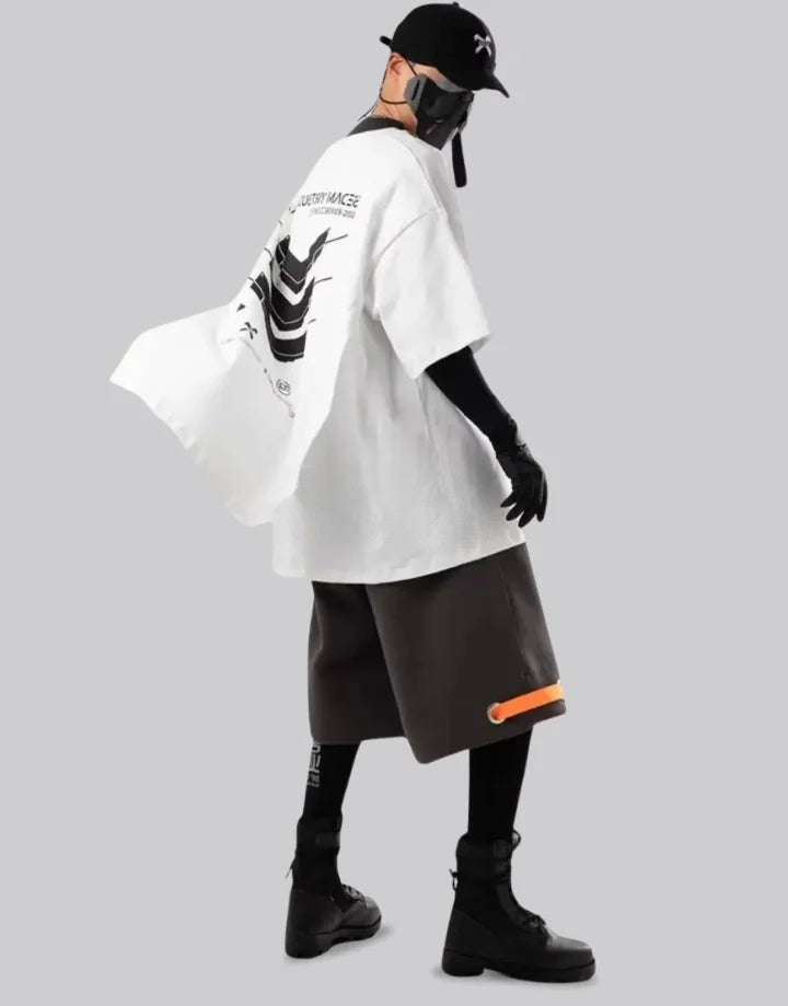 The Cyberpunk Graphic Tee is designed to be as flexible as the urban denizens who wear it. Pair it with cargo pants for a rugged look, or a sleek pair of techwear trousers for a night out in the neo-city. Its timeless color scheme ensures it can integrate seamlessly with any wardrobe, making it a staple piece for any techwear enthusiast.