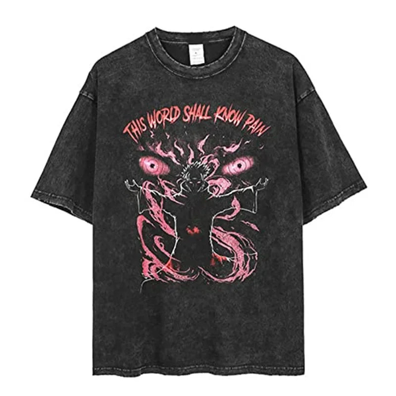 Wear this retro washed shirt printed with Pain, leader of Akatsuki. If you are a true fan of Naruto and the hidden rain village, then this pain shirt is a must-have in your wardrobe. This tee-shirt is made of cotton with a retro vintage effect.