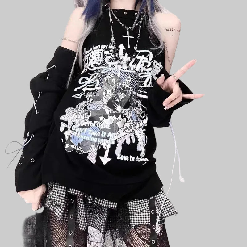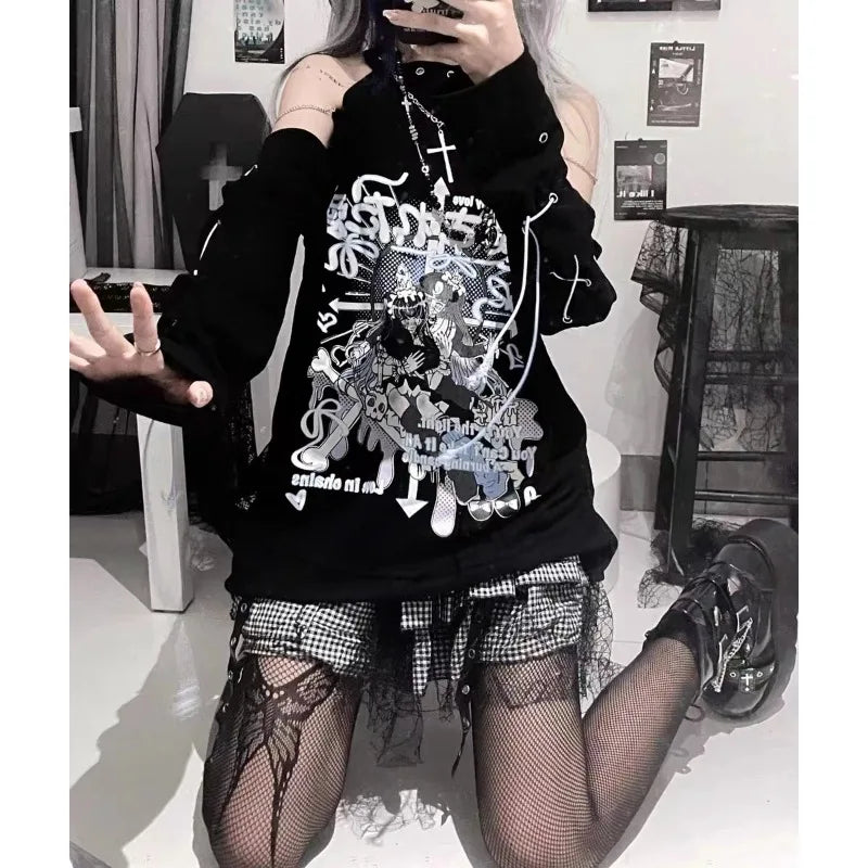 The standout feature of the Cryovoid Angel T-Shirt is its unique print. The gothic design, infused with kanji, gives it an avant-garde edge, capturing the essence of darkwear while paying homage to Japanese culture. The kanji characters, often associated with deeper meanings and philosophies, add layers of depth to the shirt’s design, making it a conversation starter.